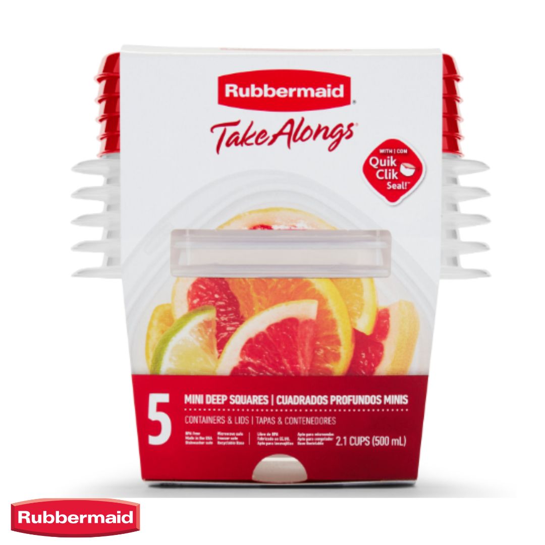 RUBBERMAID TakeAlongs® Small Square Food Storage Containers 2.1 / 491 ML / RUBY 5PK