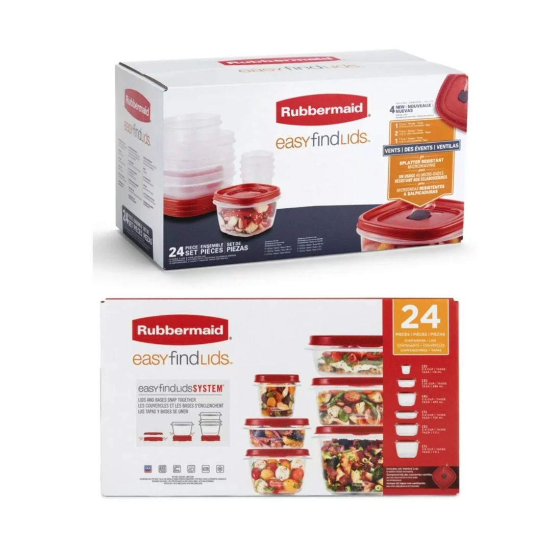 Rubbermaid Vented Easy Find Lid Food Storage Containers, 24-Piece Set, Racer Red